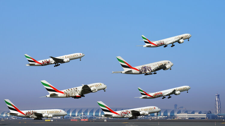 Samoloty zostały ozdobione wizerunkami drużyn dla uczczenia współpracy Emirates z sześcioma legendarnymi klubami piłkarskimi, które łącznie zrzeszają ponad półtora miliarda kibiców na całym świecie.